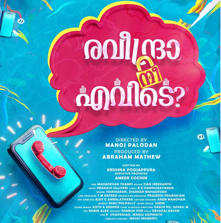 അബാം മൂവീസിന്റെ ബാനറിൽ എബ്രഹാം മാത്യു നിർമ്മിച്ച് മനോജ് പാലോട് സംവിധാനം ചെയ്യുന്ന ഏറ്റവും പുതിയ ചിത്രം ‘രവീന്ദ്രാ, നീ എവിടെ?’ എന്ന് ചിത്രത്തിന്റെ ടൈറ്റിൽ മോഷൻ പോസ്റ്റർ പുറത്തിറങ്ങി. ജൂലൈ മാസത്തിൽ ചിത്രം തിയേറ്ററുകളിൽ പ്രദർശനത്തിന് എത്തും. ചിത്രത്തിൽ അനൂപ് മേനോനും ഷീലു അബ്രാഹാമും പ്രധാനകഥാപാത്രങ്ങളായി എത്തുന്നു.